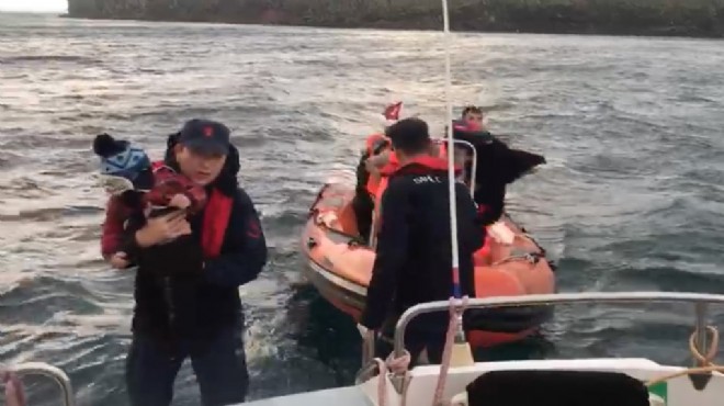 Sahil güvenlik unsurları, aralarında kadın ve çocukların da bulunduğu 44 kişiyi kurtararak Ayvalık Limanı'na getirdi.