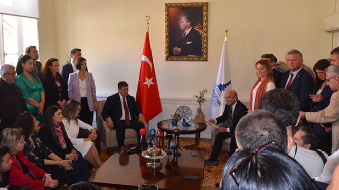 Devir teslim töreninde ilk sözü alan İzmir Büyükşehir Belediye Başkanı Tunç Soyer, partinin seçim zaferini kutlarken yeni seçilen başkanları da tebrik ederek, başarılar diledi.
