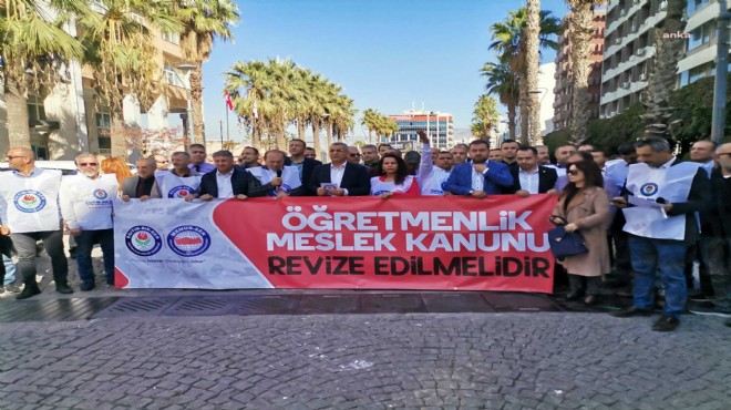 Eğitim Bir Sen üyesi öğretmenler Öğretmenlik Meslek Kanunu'nun yeniden düzenlenmesi için İzmir'de eylem yaptı. "Kanun köstek değil, bize destek olsun" sloganı atan öğretmenler, "Öğretmenlik Meslek Kanunu, öğretmenlik mesleğini düzenleyen müstakil bir kanun beklentisini karşılama yönünde olumlu bir adım olmanın ötesine geçememiş, öğretmenlerin beklentilerini karşılayamamıştır" açıklamasını yaptı.