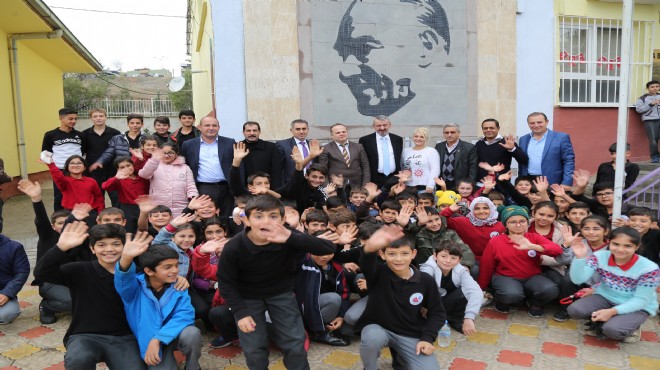 ?Öğrencilerinde yoğun ilgi gösterdiği Başkan Şenol, belediyenin kayrak taşından okul duvarına yaptığı Atatürk portresinin önünde çocuklarla fotoğraf çektirdi.