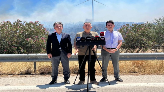 İzmir Valisi Süleyman Elban, Çeşme'deki yangın bölgesine gelerek yetkililerden bilgi aldı. Vali Elban, alevlerin sıkıştırıldığını belirtip, "Can kaybımız ve yaralımız yok. Aktif olarak arkadaşlarımız havadan ve karadan müdahale ediyorlar. Saatte 85 kilometreye ulaşan rüzgarın etkisiyle hem yangın çok hızlı yayılıyor hem düzensiz rüzgardan alevler yön değiştiriyor. Havadan ve karadan müdahale noktasında mücadeleyi ciddi manada zorluyor. Tüm arkadaşlarımızın çabasıyla yangın, oto yolun olduğu bu bölüme sıkıştırılmış durumda. İnşallah çok kısa zaman içinde 'Kontrol altına alındı' bilgisini vermeyi hedefliyoruz. Otoyol da trafiğe kapatılmış durumda. Çok kısa süre içinde trafiğe açacağız. Görüş alanı da açılmaya başladı" dedi.