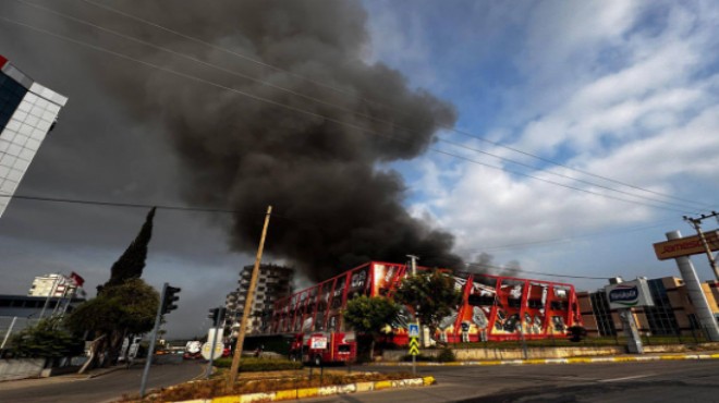 Mersin'in merkez Toroslar ilçesinde ses ve görüntü sistemleri üretilen fabrikada çıkan yangına müdahale ediliyor.