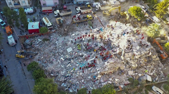 İzmir'de 30 Ekim 2020'de meydana gelen 6,6 büyüklüğündeki depremde yıkılan Emrah Apartmanı'nda 30 kişi hayatını kaybetmiş, 8 kişi yaralanmıştı. 3 sanık hakkında "bilinçli taksirle birden fazla kişinin ölümüne ve yaralanmasına neden olma" suçundan 2 yıl 8 aydan 22,5 yıla kadar hapis istemiyle dava açılmış, sanıklardan biri dava sürecinde yaşamını yitirmişti.(AA)