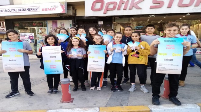İzmir'in Bayraklı ilçesinde bulunan Nedret İlhan Keten İlkokulu'ndaki öğretmen ve öğrenciler, Bayraklı Milli Eğitim Müdürlüğü koordinatörlüğünde yürütülen 'Sorunlarımızdan Sorumluyuz' projesi kapsamında, engelli vatandaşlara yönelik farkındalık oluşturmak için 'Engelsiz yürekler yazıyor, çiziyor ve anlatıyor' projesini başlattı. Projeyle engellilerin sesi olmayı amaçlayan grup, engelli bireyler ve yakınları tarafından yapılan resim, şiir ve yazıları bir kitapta ölümsüzleştirecek. Proje kapsamında bir araya gelen öğrenciler, Bayraklı Sevgi Yolu'nda hazırladıkları broşür ve afişlerle vatandaşı bilgilendirerek engellilere projeyi duyurmayı amaçladı. Şuanda projenin tanıtım aşamasında olduğunu belirten okulun matematik öğretmeni Gözde Yalçın, "Hem engelliler hem de engelli yakınlarının yaşadıklarını bizlerle paylaşmasını istiyoruz. Resim yapabilen resimle, yazı yazabilen yazıyla anlatmak istediğini anlatacak ve biz de bunları kitap haline getireceğiz. Şuanda bu projenin tanıtımını yaptık. Bize ulaşmalarını istedik, numaralarımızı paylaştık ve gerekli durumlarda öğrencilerimizle birlikte ev ziyaretleri de gerçekleştireceğiz. 3 aylık süreçte paylaşım toplayıp daha sonra bunu kitaplaştıracağız" dedi.