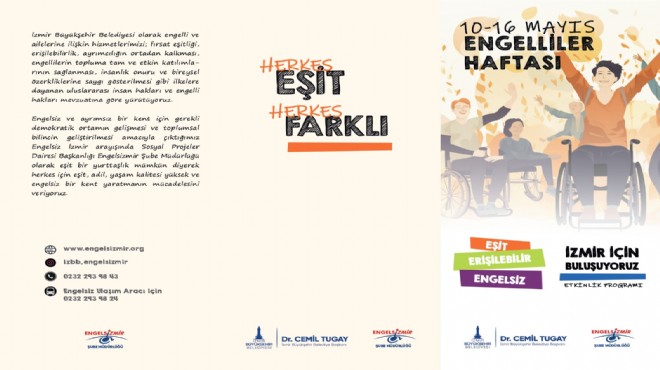 Engelsiz bir kent yaratma hedefiyle çalışmalarını sürdüren İzmir Büyükşehir Belediyesi, 10-16 Mayıs Engelliler Haftası kapsamında bir dizi etkinlik düzenliyor. “Eşit Erişilebilir Engelsiz İzmir İçin Buluşuyoruz” sloganıyla yapılacak etkinlikler kapsamında sahne performansları, atölyeler, sergiler, sokak farkındalık etkinlikleri, spor aktiviteleri ve paneller olacak.