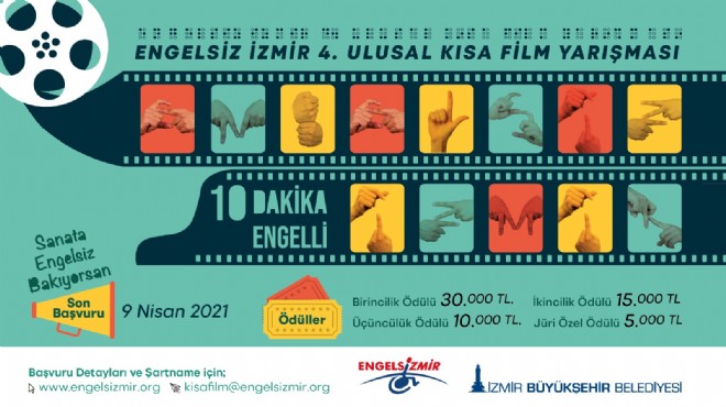 İzmir Büyükşehir Belediyesi tarafından 27-29 Mayıs 2021 tarihlerinde yapılacak “Kriz Belediyeciliği ve Kamusal Hizmetlere Erişim” temalı 4. Uluslararası Engelsizmir Kongresi kapsamında düzenlenen “10 Dakika Engelli” konulu ulusal kısa film yarışması için başvurular başladı. Engellilerin kentsel ve sosyal yaşama katılımlarının kolaylaştırılmasına dikkat çekerek bu konuda duyarlılığa sahip olanların duygu ve düşüncelerini ifade etmelerine olanak sağlayacak yarışmaya katılım için son tarih 9 Nisan 2021. Sonuçlar 7 Mayıs 2021’de açıklanacak, ödül töreni ise 27 Mayıs’ta yapılacak. Yarışmaya katılmak isteyenler başvuru belgelerini Kültürpark’ta yer alan İzmir Büyükşehir Belediyesi Kültür ve Sanat Şube Müdürlüğ ü’ne teslim edebilir.