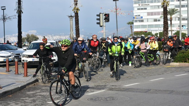 Açıklamanın ardından bisikletlerine binen topluluk, kortej yaparak Cumhuriyet Meydanı'ndan İnciraltı'na kadar farkındalık için pedal çevirdi. (DHA)