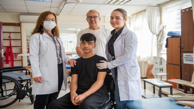 6 Şubat depremleri sırasında Osmaniye’de enkaz altına kalarak yaralanan 14 yaşındaki Mustafa Elmas omuriliğindeki zedelenme nedeniyle yatağa bağımlı hale geldi. Depremde anne ve babasını da kaybeden Mustafa’nın yeniden yürüyebilmesi için yoğun bir tedavi ve bakım süreci geçirmesi gerekiyordu. İzmir Büyükşehir Belediye Başkanı Tunç Soyer’in talimatıyla Eşrefpaşa Hastanesi’ne getirilen genç Mustafa, burada uygulanan fizik tedavi sayesinde ilk adımlarını kısa sürede attı.