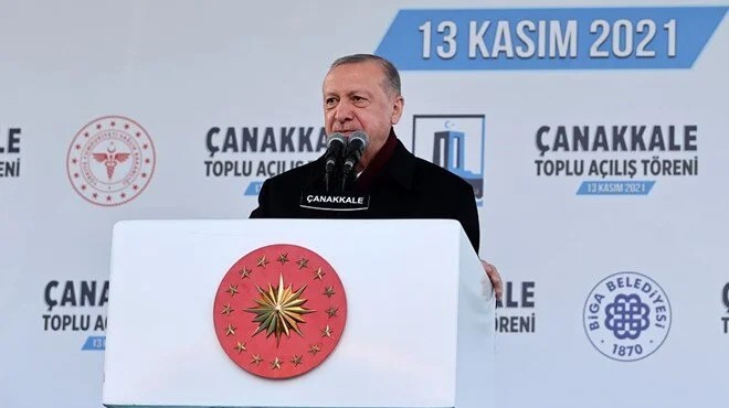 Cumhurbaşkanı Recep Tayyip Erdoğan, Biga Belediye Meydanı'nda düzenlenen toplu açılış töreninde konuşuyor.