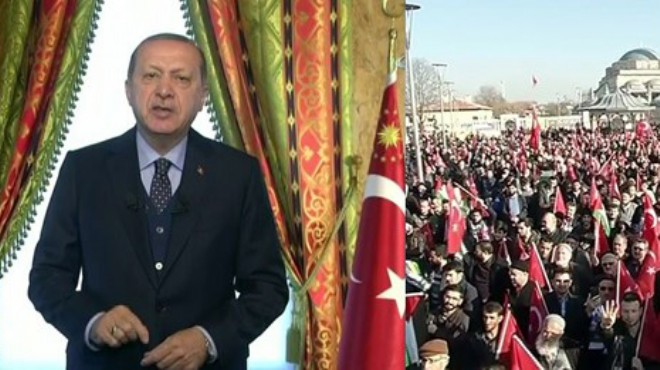 Cumhurbaşkanı Tayyip Erdoğan, Konya'da düzenlenen Kudüs mitingine videokonferans yoluyla katıldı.