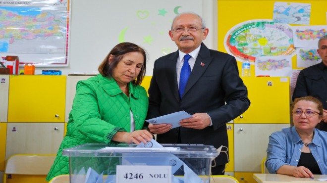 Mahalli İdareler Genel Seçimleri'nde oyunu kullanmak üzere Arjantin İlkokulu’ndaki "4246" numaralı sandığın bulunduğu sınıfın önünde sıraya giren Kılıçdaroğlu ve eşi, sandık görevlileriyle selamlaştıktan sonra kabine geçerek oyunu kullandı.