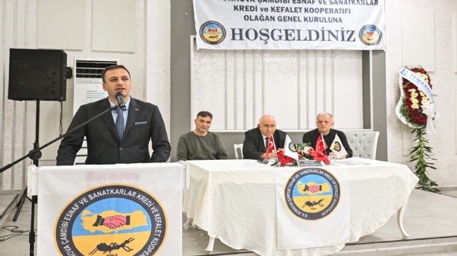 Çamdibi Esnaf ve Sanatkarlar Kredi ve Kefalet Kooperatifi Başkanı Mustafa Kaplan, genel kurula katılım sağlayan ve desteklerini esirgemeyen Bornova Belediye Başkanı Ömer Eşki’ye teşekkür etti.