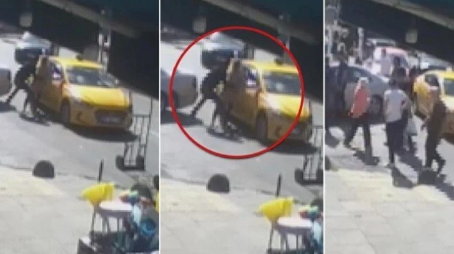 Saldırgan, kolundan tuttuğu kadını yol boyunca sürükleyerek sokağın başında bekleyen taksiye zorla bindirmeye çalıştı.