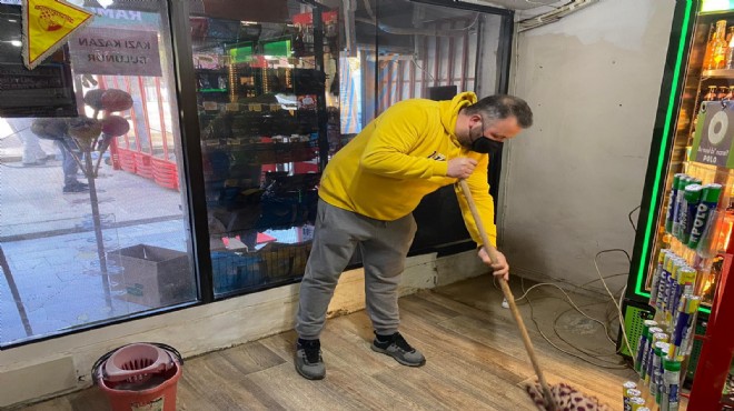 35 yıldır Güzelyalı’da yaşayan Ramazan Orçun Erkan ise, “Bel hizasında su vardı. Öğlene kadar dükkana giremedik. Dalgıç pompayla içerideki suyu 3-4 saatte boşalttık. 10 ton su çıktı. Bütün mallarım yerlerde yüzüyordu. İzmir İtfaiyesi gece geç saatlerde bize ulaştı ve tutanak tuttu. Yaklaşık 25 bin lira zararımız var. Yetkililerden yardım bekliyoruz. Şu an temizlik yapıyorum. İçeriden hala çamur çıkıyor. Bizi mahvetti, üç gündür temizlik yapıyoruz. Dükkanı çalışır hale getirmemiz lazım bir an önce" diye konuştu.
