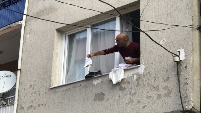 İzmir'in Karabağlar ilçesinde eline geçirdiği eşyaları ve yaktığı kıyafetleri penceresinden sokağa atan kişi, gözaltına alındı.