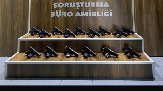 Evde yapılan aramada, 15 ruhsatsız tabanca ve bunlara ait 15 şarjör ele geçirildi.