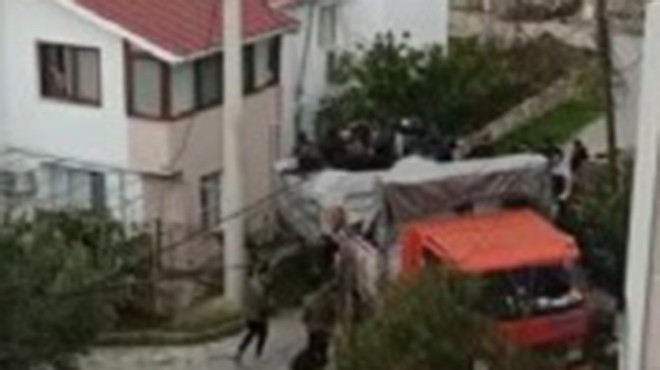 İskele Mahallesi'nde evlerin bahçe duvarlarına çarparak duran bir kamyonun kasasında insanların olduğunu gören çevredekiler, durumu polis ekiplerine bildirdi.