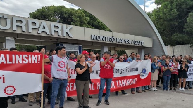 Gıda İş İzmir Sekreteri Olcay Özak da, "Sendikaya üye olmak ahlaksızlık değildir, anayasal bir haktır. Bizler, sizlerin makinalarınızın dişlisi değiliz. Üreten, size milyonlar kazandıran işçilerin sendikaya üye olması haktır. Bu ücretlerle geçinebilmemiz, çocuklarımızın, ailelerimizin yaşamlarını insani düzeyde sürdürebilmesi mümkün müdür. Elbette değildir" dedi.