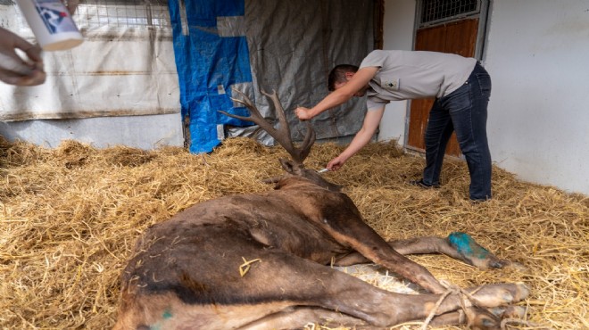 İzmir Büyükşehir Belediyesi Veteriner İşleri Halk Sağlığı Daire Başkanlığı’na bağlı Veteriner Hekim Şükrü Erdem Onur, “Yaralı kızıl geyik bize getirildi ve hemen anesteziye alıp tedaviye başladık. Röntgen çekildi. Ayakta kırık olduğunu gördük. Yine ateşli silahla yaralanma sonucu ayağında çok sayıda saçmanın olduğunu da tespit ettik. Ayağı çok kötü durumdaydı. Her iki tarafta tenis topu büyüklüğünde çıkıntılar var. Bunların kemik üremesine bağlı olduğunu düşünüyoruz” dedi. 4-5 yaşlarında olduğu tahmin edilen geyiğin, önümüzdeki hafta ortopedi operasyonuna alınacağını vurgulayan Onur, “Hayvanı anesteziye alıp ortopedi operasyonu yapacağız. Zorlu bir operasyon olacak. Yaklaşık 1 buçuk yıldır bu şekilde doğada yaşadığını tahmin ediyoruz. Kızıl geyiği, sağlığına kavuşturup yeniden doğal yaşam alanına bırakmak istiyoruz. Veteriner hekimler olarak bunu başarabilirsek çok sevineceğiz” diye konuştu.