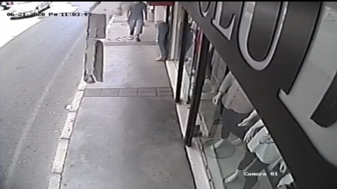 İZMİR - Karabağlar ilçesinde, kaldırımda yürüyen yayanın önüne beton parçası düştü. Güvenlik kamerasına saniye saniye yansıyan olayda yaya, yaralanmadı.