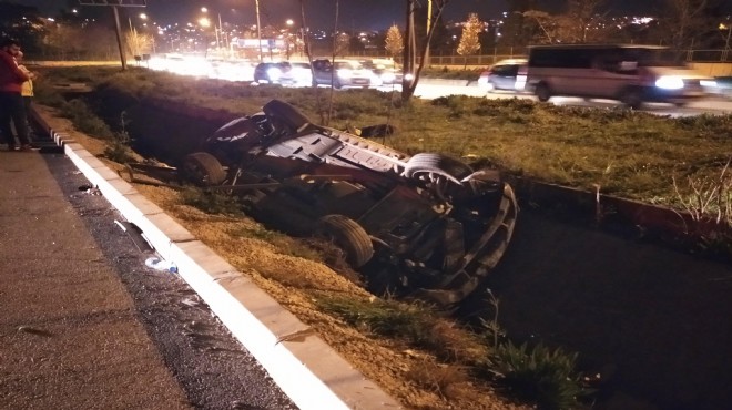 İZMİR - Kaza, saat 20.00 sıralarında Yeşildere Caddesi Uçan Yol yakınında meydana geldi. Konak'tan Karabağlar yönüne giden Fatih B.'nin kullandığı 60 EY 801 plakalı cip, sürücüsünün direksiyon kontrolünü yitirmesi sonucu yol kenarındaki kaldırıma çarpıp, takla atarak su kanalına devrildi.
