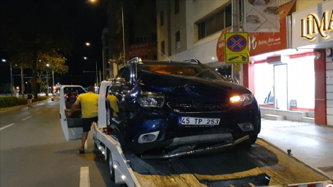 Alınan bilgiye göre, Kamil Karadeniz yönetimindeki 45 TP 253 plakalı otomobil Gazi Bulvarı ile Halit Ziya Bulvarı'nın kesiştiği kavşakta Oğuzhan Ümmet İpek (25) idaresindeki 35 ALZ 741 plakalı araçla çarpıştı.