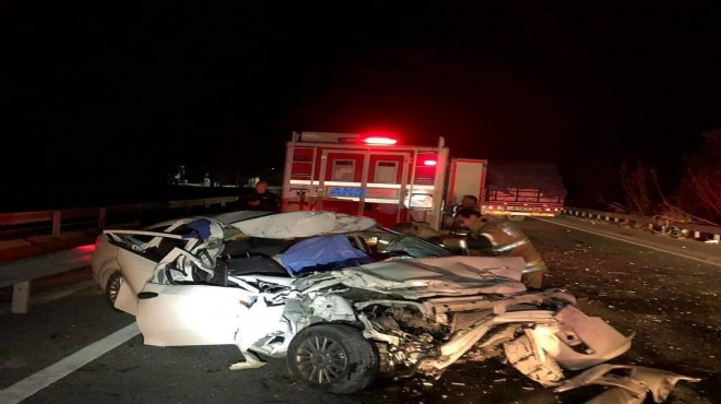 ?Bergama'dan Çanakkale yönüne giden Kemal Bozkurt yönetimindeki 45 SC 4201 plakalı otomobil, Muammer A.'nın (31) kullandığı 34 AJM 158 plakalı kamyona arkadan çarptı. Kazayı gören diğer sürücüler, durumu sağlık ve itfaiye ekiplerine bildirdi. İhbar üzerine gelen sağlık ekiplerinin yaptığı kontrolde, otomobil sürücüsü Bozkurt'un hayatını kaybettiği belirlendi. İtfaiye ekipleri otomobilde sıkışan Bozkurt'un cansız bedenini içeriden çıkardı. Bozkurt'un cesedi, savcının incelemesinin ardından Bergama Necla-Mithat Öztüre Devlet Hastanesi morguna kaldırıldı. (DHA)