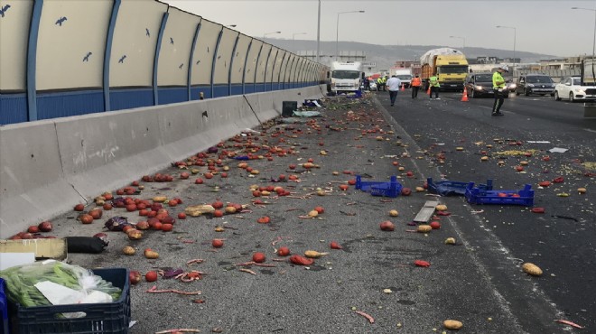 Öte yandan kaza sonrasında yola saçılan meyve ve sebzeler, Kaçak'ın yakınları tarafından toplandı.