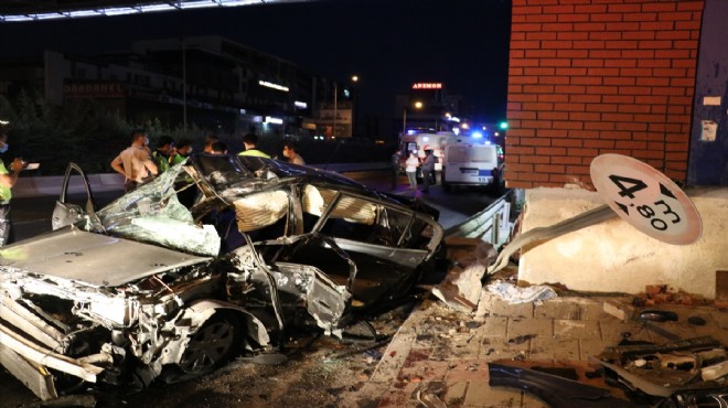 İzmir'in Çiğli ilçesinde otomobilin üst geçide çarpması sonucu 1'i ağır 3 kişi yaralandı.