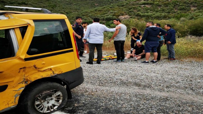 Bugün saat 13.00 sıralarında, İzmir'in Selçuk ilçesinden Menderes ilçesi Ahmetbeyli Mahallesi yönüne giden Ural İşçen'in kullandığı 09 T 4155 plakalı taksiye, virajda karşıdan gelen bir TIR'ın savrulan dorsesi çarptı. Çarpmanın etkisiyle takta atan taksinin şoförü Ural İşcen ile yolcusu Hollandalı 2 turist yaralandı.