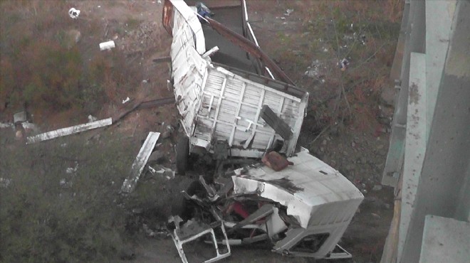 İzmir'in Ödemiş ilçesinde tırın köprüden düşmesi sonucu 3 kişi yaralandı.