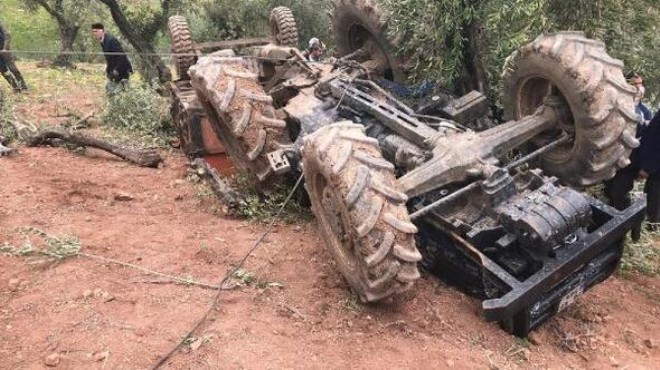 Tire ilçesinde, devrilen traktörün altında kalan Mehmet Arslan (54) öldü, kızı Ebru Arslan (23) yaralandı.