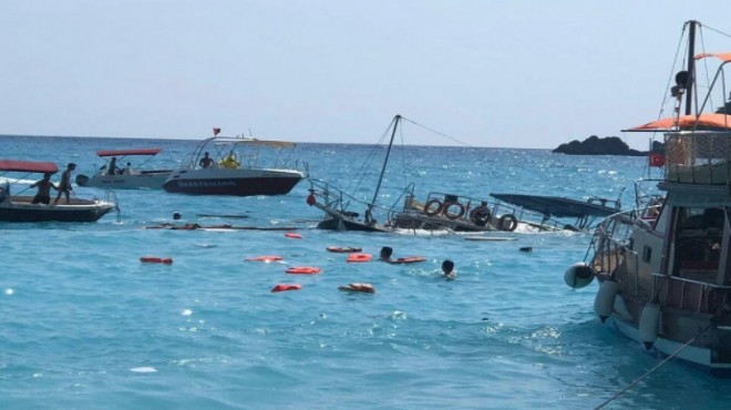 İçinde 35'i yolcu 38 kişinin bulunduğu teknedeki 3 kişi yaralandı. Yaralılar hastanelere kaldırıldı.