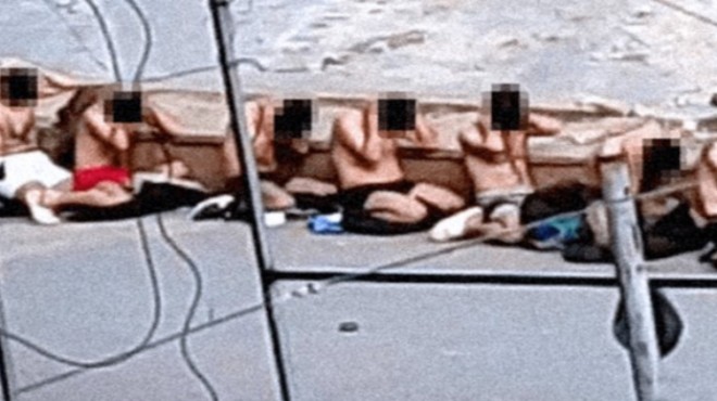 16 Şubat'ta gizlice çekilen ve BBC ile paylaşılan görüntülerde, hastanenin acil servis binasının önünde, iç çamaşırlarıyla diz çökmüş halde bir grup erkek görülüyor. Bu kişilerin ellerinin arkadan bağlı olduğu görüntülerden seçilebiliyor.