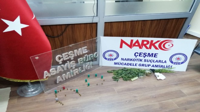 Olay, dün gece saatlerinde Ilıca Mahallesi'nde meydana geldi. Cezaevi firarileri U.S.U. ve C.A., arasında bir süre önce para nedeniyle anlaşmazlık çıktı. Bu sorunu çözmek için konuşmak üzere ikili, ortak arkadaşları A.G. ile buluştu. Bir süre sonra U.S.U. ve C.A. arasında tartışma çıktı. Tartışma kısa sürede büyüyerek kavgaya dönüştü. Bu sırada çevredekilerin ihbarı üzerine olay yerine sağlık ve polis ekipleri sevk edildi. Çeşme Asayiş Büro Amirliği ekipleri, olay yerinde gelince taraflar koşarak kaçmaya çalıştı. Ekipler, kaçmaya çalışan U.S.U'yu yakaladı. Gözaltına alınan U.S.U.'nun verdiği bilgiler doğrultusunda diğer cezaevi firarisi C.A.'nın saklandığı adrese giden polis, burada 16 kök Hint keneviri, beyaz kağıda sarılı 4.68 gram gelen esrar, kavanoz içinde 5.60 gram esrar, cam tabak içinde tütünle karışık 1.8 gram esrar, tütün sarma makinesi, 9/19 mm 18 dolu fişek ve 9 dolu av tüfeği kartuşu ele geçirdi.