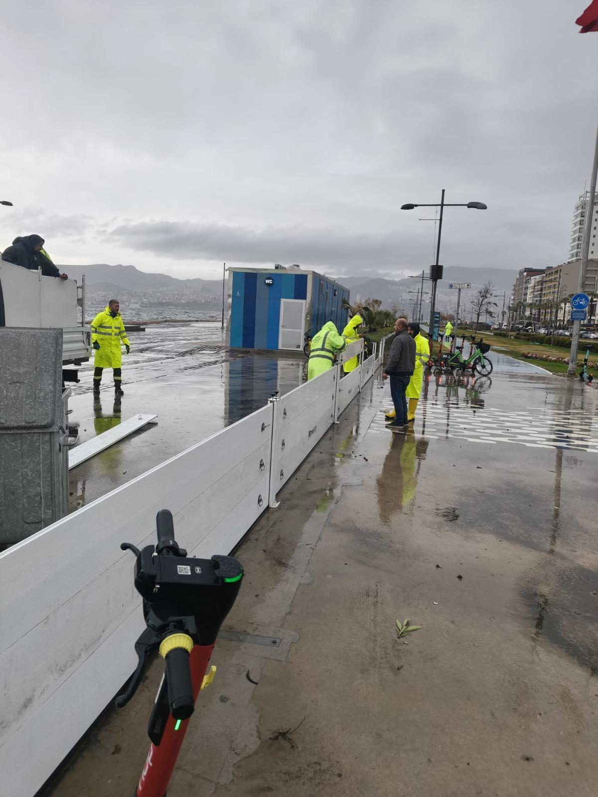 İzmir Büyükşehir Belediyesi’nin Kordon’da deniz taşkınlarını önlemek ve İzmirlilerin kıyı şeridini daha konforlu kullanmasını sağlamak amacıyla hayata geçirdiği geçici fırtına duvarı, kenti etkisi altına alan sağanak yağış ve fırtına sırasında deniz taşkınını engelledi. İzmir Büyükşehir Belediyesi Fen İşleri Dairesi Başkanlığı ekipleri, Meteoroloji Genel Müdürlüğü’nün uyarılarının ardından geçici fırtına duvarının kapılarını aktif hale getirerek olası risklere karşı önlem aldı.