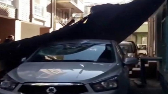 İzmir'de, dün kent genelinde etkili olan şiddetli rüzgar, hayatı olumsuz etkiledi. Kuzey ve kuzeydoğu yönlerinden esen ve zaman zaman saatte 90 kilomete hıza ulaşan fırtına nedeniyle, Altındağ ilçesinde bir binanın alüminyum çatısı uçtu. Sokakta park halinde olan bir otomobilin üzerine düşen çatı, araçta maddi hasara neden oldu. Çatının düştüğü sırada araçta ve sokakta kimsenin bulunmadığı öğrenildi. (DHA)