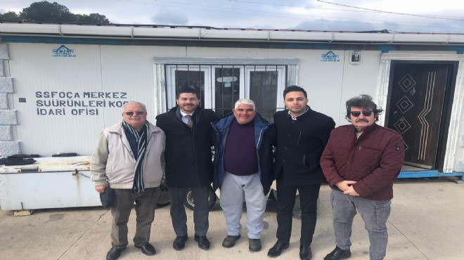 Sivil toplum kuruluşu ziyaretlerini S.S. Foça Merkez Su Ürünleri Kooperatifi ile sürdüren Fatih Gürbüz, Foçalı balıkçıların başkanı Ceyhan Çetin ve yönetimiyle bir araya geldi. Fatih Gürbüz'e CHP Foça İlçe Başkanı Baran Gezmiş Yıldırım ve partililer eşlik etti.