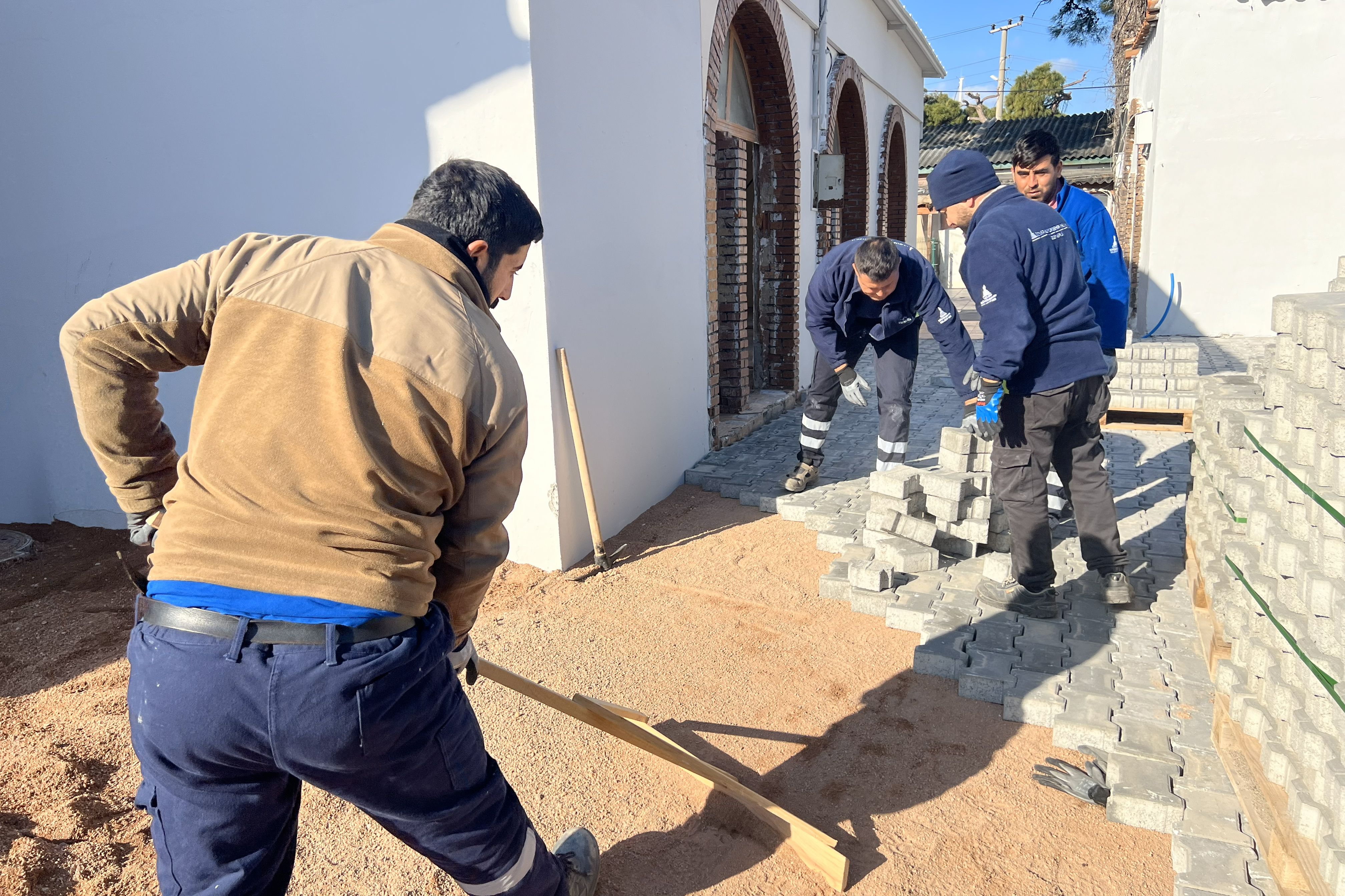 Yeni İZSU Hizmet Binası çevresinde yürütülen çalışmalarda; altyapı ve üstyapı düzenlemeleri titizlikle hayata geçirilirken, alanın uzun ömürlü, güvenli ve sağlıklı şekilde kullanılabilmesi amacıyla zemin iyileştirme uygulamaları yapılıyor. Yaya ve araç kullanım konforunu artırmak, alanın düzenli bir görünüme kavuşmasını sağlamak için kilit parke taşı döşeme imalatları eş zamanlı olarak sürdürülüyor.