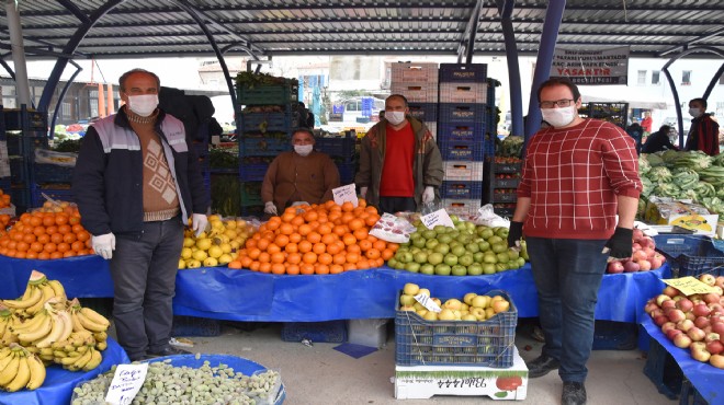 Foça Belediyesi, ilçe merkezinde salı günleri kurulan pazarında yeni tip koronavirüs salgının önlenmesi kapsamında tedbirler aldı.