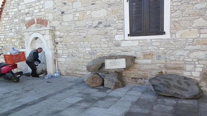 Bazalt taş üzerine usta şair Ataol Behramoğlu'nun yazdığı 'Karataş' şiirinin dizeleri ve arkeolog Ertan Aksoy'un tasarımıyla ilçeye özgü sembollerin işlendiği Karataş Anıt Taşı Foça'nın kurtuluş günü olan geçtiğimiz 11 Eylül'de törenle Demokrasi Meydanı'na yerleştirildi. Ancak konulduğunda da kafeteryaların sandalyeleri arasında kaldığı için eleştirilen 'Karataş Anıt Taşı' birkaç gün sonra açıklanmayan bir nedenle yerinden kaldırıldı. Restorasyonu tamamlanmaya çalışılan Öğretmen Evi arkasındaki Marsilya Meydanı'na konuldu. Hemen yanındaki sokak çeşmesinden su doldurmaya gelenlerin bisiklet yada motosikletlerini dayadığı anıt taşı, bazı vatandaşlar tarafından oturak olarak kullanılmaya başlandı. Sanatseverler bu durumun sanat kenti olmasıyla övünen Foça için büyük bir ayıp olduğunu savunurken, hem sanat hem efsaneye saygı adına Karataş'ın yakışan bir yere taşınmasını, bir kaide üzerine oturtularak yapılış amacına uygun duruma getirilmesini talep etti. Vatandaşlar taşın üzerindeki 'Karataş'a bir kez ayak basan, Foça'dan ayrılamazmış derler, Foça da sizi bırakmaz zaten." (DHA)