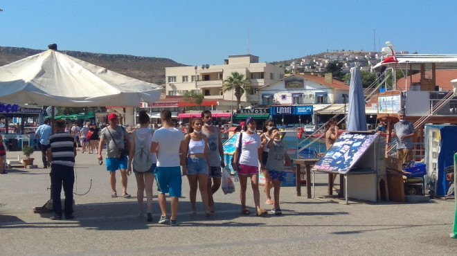 Özel araçlar, İzmir Banliyö (İZBAN) trenleri, aktarma otobüsleri ve minibüslerle karayolunu, İZDENİZ’e ait gemilerle denizyolunu kullanarak gelenler bayramda büyük kalabalıklar oluşturdular. Sabahın erken saatlerinde ilçeye inenler simit fırınları önünde 50’şer metreyi bulan kuyruklar oluşturdular. Kahvaltı salonları, kafe ve benzeri yerlerde oturabilmek için sıra beklediler. Gezi teknelerinin yemekli günlük turlarına yoğun talep oldu. Kalkış saati olan 11.00’dan sonra tekne bağlama iskelelerinde alışık olunmayan boş görüntüler yaşandı.