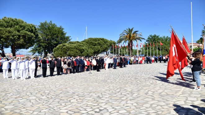 Çelenk sunma törenine, Foça Kaymakamı Ali Çetin, Garnizon Komutanı Amfibi Görev Grup Komutanı Tümamiral Yankı Bağcıoğlu, Belediye Başkanı Fatih Gürbüz, Cumhuriyet Başsavcısı Mehmet Halis Kara, sivil ve askeri erkan, siyasi partilerin ilçe başkanları, sivil toplum kuruluşları temsilcileri, öğrenciler, öğretmenler ve vatandaşlar katıldı.