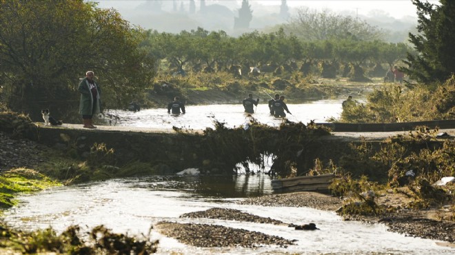 Foça'da dün meydana gelen sağanakta metrekareye 1,5 saatte yaklaşık 144 kilogram yağış düşmüş, ilçede dereler taşıp, birçok evi ve iş yerini su basmıştı.
