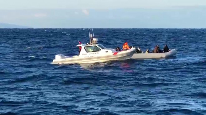 Foça ilçesi açıklarında, lastik botla yasa dışı yollarla Yunanistan adalarına gitmeye çalışan 30 kaçak göçmen, Sahil Güvenlik ekipleri tarafından yakalandı.
