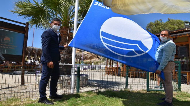 Foça Belediye Başkanı Fatih Gürbüz ve TÜRÇEV İzmir ve Kuzey Ege İlleri Koordinatörü Doğan Karataş, 2020 Yılı Mavi Bayrağını Karakum Plajı’ndaki göndere çekti.