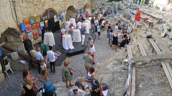 Foça Beşkapılar Kalesi sanat galerisindeki 2019 Yaz Resim Sergisinin açılışına, Foça Belediye Başkanı Fatih Gürbüz, sanatçılar ve sanatseverler katıldı.