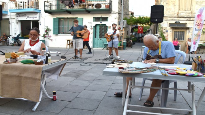 Foça Sanat Sokağında düzenlenen atölye çalışmaları ve müzik dinletileri devam ediyor.