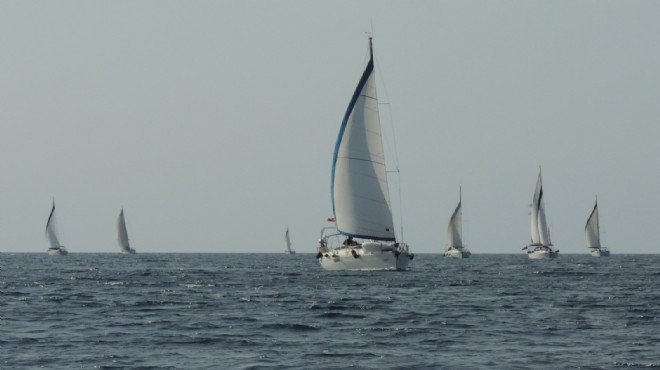 Urla, Çeşme, Foça, Yenifoça, Çandarlı ve Midilli'den hareket eden teknelerin Karaburun açıklarında toplanmasıyla başlayan organizasyonda yelkenliler, Foça'nın Orak Adası ve Foça limanı önlerinde demirledi.