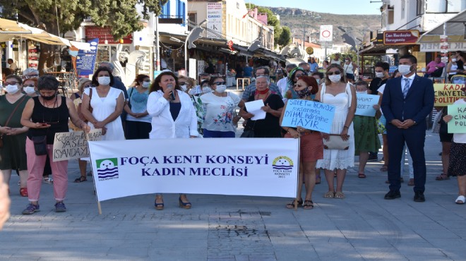 Ortak basın açıklaması, Foça Kent Konseyi Kadın Meclisi Başkanı Avukat Dirim Metinel tarafından okundu.